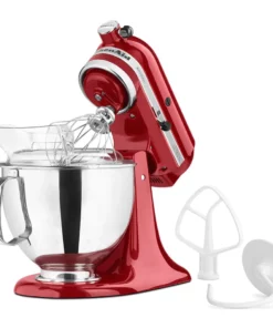 ¡Descubre la Batidora Artisan roja de KitchenAid, tu mejor aliada en la cocina! Con un diseño impresionante y un motor potente de 300W, esta batidora planetaria no solo es hermosa, sino también extremadamente funcional. Perfecta para mezclar ingredientes, preparar masas y batir claras, su innovador movimiento orbital asegura que cada mezcla sea homogénea, tocando hasta 67 puntos en el bowl.