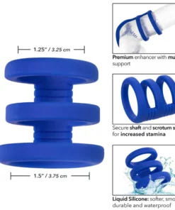 Explora un mundo de placer sin límites con la impresionante Admiral Jaula Triple para Pene Azul de CalExotics. Diseñada para quienes buscan aumentar su rendimiento y disfrutar de una experiencia única, esta jaula está hecha de una lujosa silicona líquida, suave al tacto y completamente segura para tu piel.