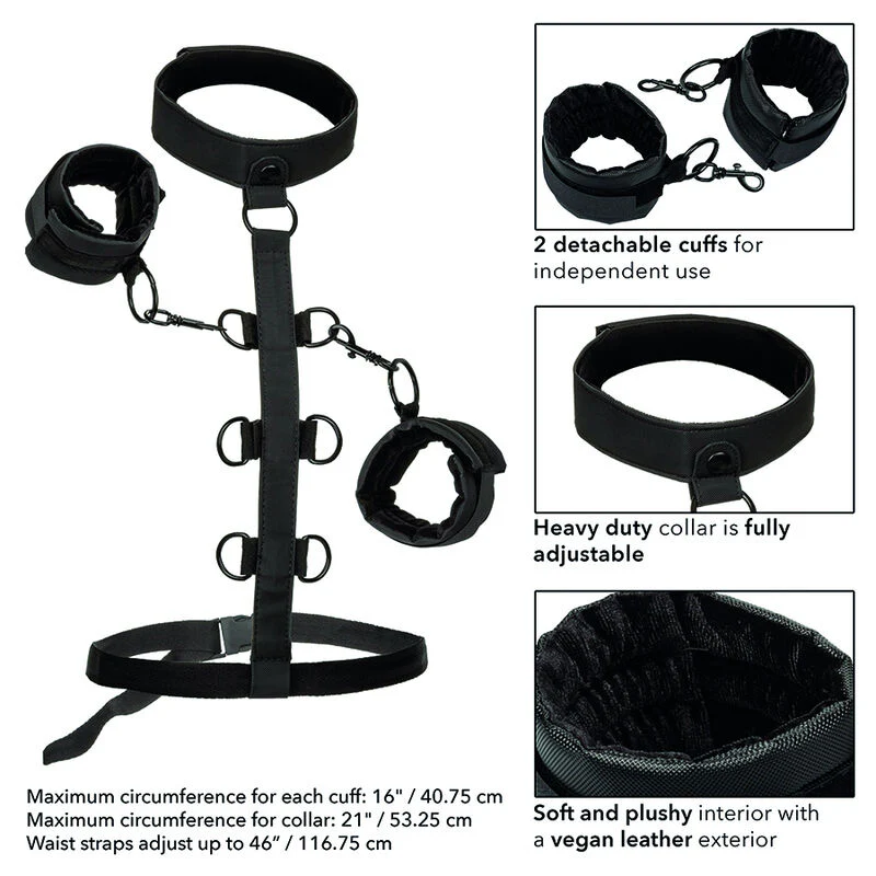 Amplía tus límites de placer con el atrevido “CALEXOTICS – BOUNDLESS SUJECCIÓN DEL CUERPO Y EL CUELLO”. Este innovador sistema de sujeción está diseñado para que tanto expertos como principiantes se sumerjan en un mundo de diversión y deseo. Con un collar resistente y puños universales de cuero vegano, podrás disfrutar de una experiencia de bondage única, explorando todas tus fantasías más atrevidas.