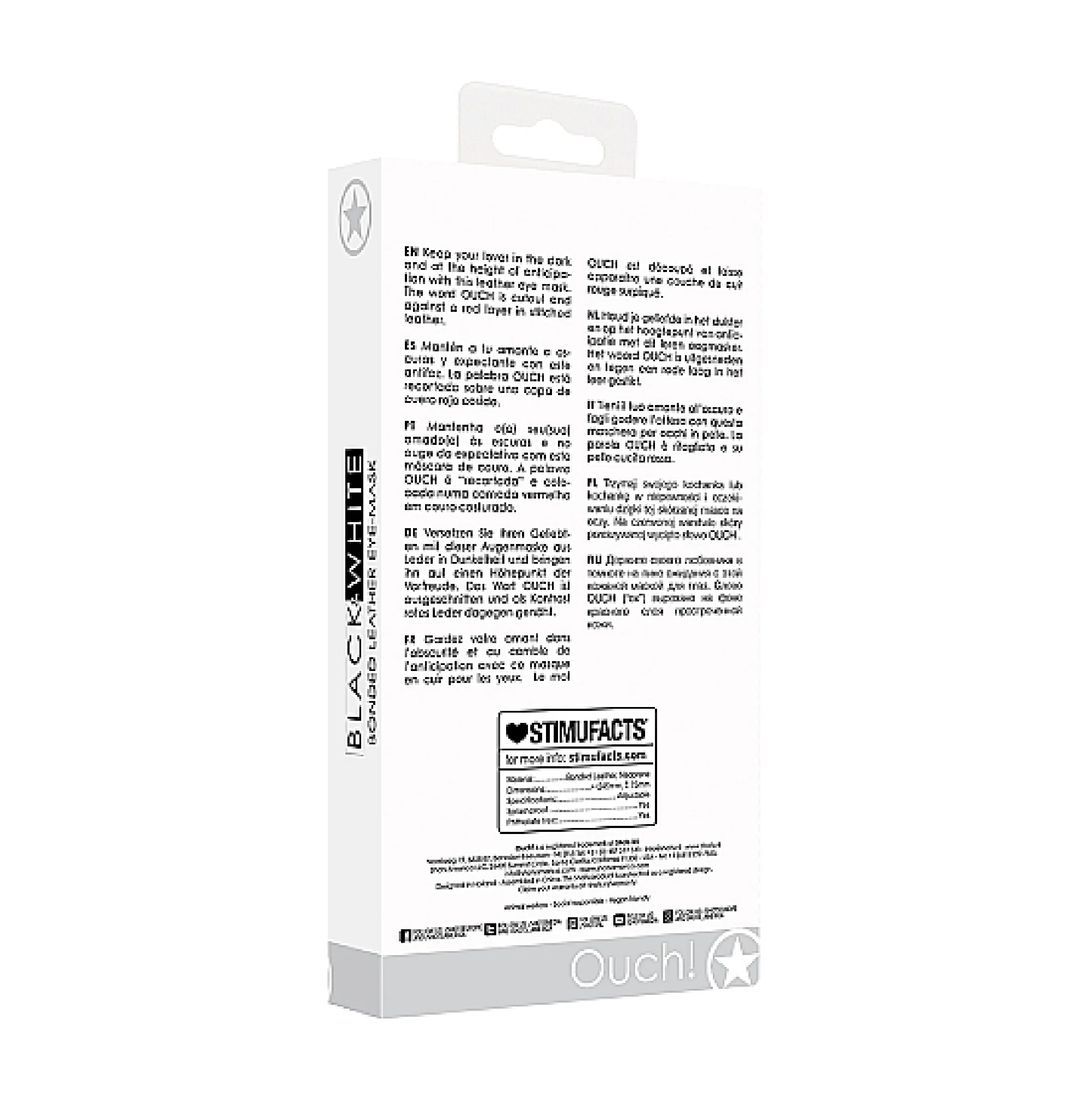 Eleva tus momentos de juego y mantén viva la chispa de la anticipación. Perfecta para quienes buscan explorar la sensualidad con un enfoque responsable y divertido. Con el Bonded Leather Eye-Mask “Ouch”, cada noche puede ser una nueva aventura. ¡Atrévete a experimentar!